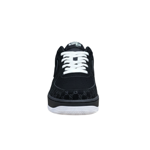 The Monogram Force Low replica sneaker blends luxury-inspired patterns with a classic low-top silhouette. Featuring a sleek black upper and contrasting sole, this shoe is perfect for casual wear, parties, and premium street fashion looks.